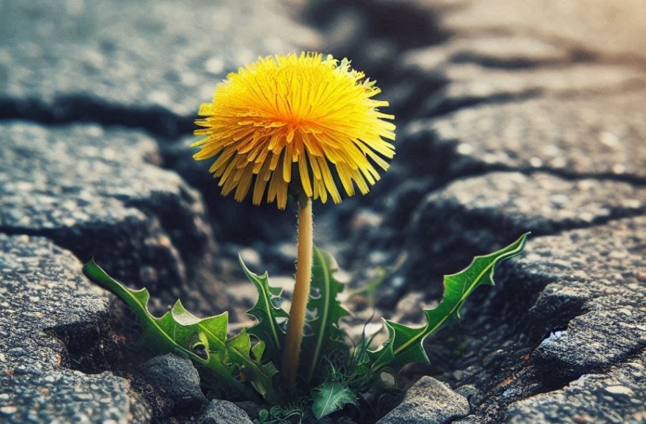 kuin voikukka asfaltin raosta.