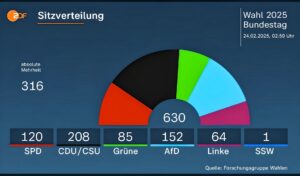 Kristillisdemokraattien Friedrich Merz joutuu hallitusneuvotteluissaan kääntymään tähänastisen vastustajansa, sosialidemokraattien Olaf Scholzin puoleen. Kun pieni liberaalinen FPD putosi parlamentista ja Wagenknechtin vuoden vanha puolue hiuksenhienosti jäi ilman liittopäiväpaikkaa 4,9 prosentin tuloksellaan, Merz on pakotettu jakamaan valtaa sosialidemokraattien kanssa. Yhteistyötä vihreiden kanssa ei tarvita, eikä sellaiseen Baijerin CSU:n johtaja, pääministeri Markus Söder olisi suostunutkaan.